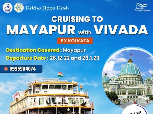 मायापुर की सैर के लिए आईआरसीटीसी (IRCTC) की ओर से एक पैकेज निकाला गया है, जिसका नाम - क्रुजिंग टू मायापुर विथ विवादा (Cruising To Mayapur With Vivada)..., जो 26 दिसम्बर 2022 व 28 जनवरी 2023 से शुरू होकर 27 दिसम्बर व 29 जनवरी तक चलेगी। इस यात्रा की शुरुआत कोलकाता से होगी।