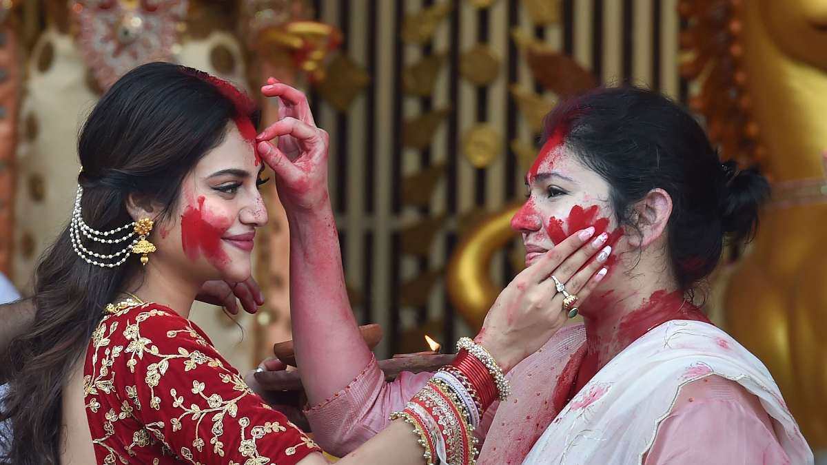 शारदीय नवरात्रि के आखिरी दिन अक्सर आपने गौर किया होगा कि महिलाएं ठीक उसी तरह से एक-दूसरे को सिन्दूर लगाती हैं, जैसे होली के समय अबीर या गुलाल लगाया जाता है। इस परंपरा को पश्चिम बंगाल में सिन्दूर खेला के नाम से जाना जाता है जिसे मां दुर्गा को विदा करने की खुशी में महिलाएं एक-दूसरे के साथ खेलती हैं।
