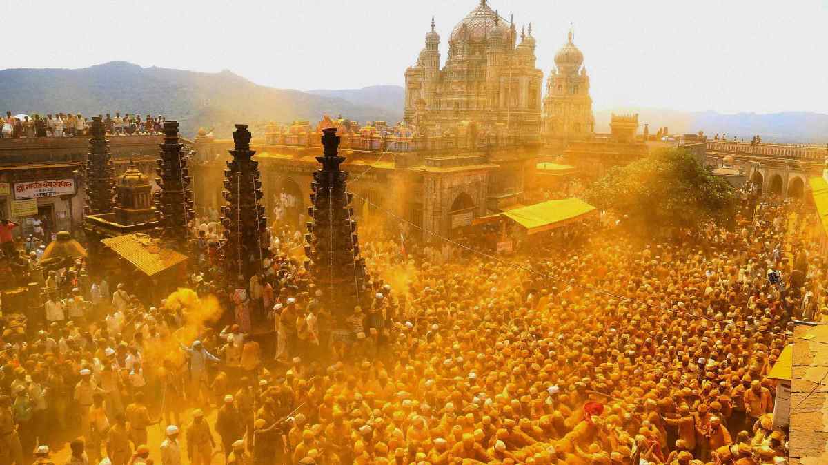 खंडोबा मंदिर में हल्दी का काफी अधिक महत्व है। हर साल यहां 'चंपा षष्ठी' के दिन मेला का आयोजन होता है। इस दिन भगवान खंडोबा और देवी महल्सा की शादी का समारोह मनाया जाता है। दोनों देवी-देवताओं को पालकी में बैठाकर मंदिर के चारो तरफ चक्कर लगाते हुए जुलूस निकाला जाता है। इस दौरान भक्त गुलाल की तरह हवा में हल्दी उड़ाते हैं और 'यल्कोट, यल्कोट, जय मल्हार' का नारा भी लगाते हैं। बता दें, यह नारा उनकी मल्ल और मणि राक्षस पर मिली विजय के लिए लगायी जाती है।
