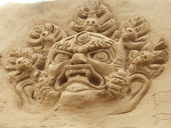 रेत से बना राक्षस का चेहरा .PC:arjunrnair