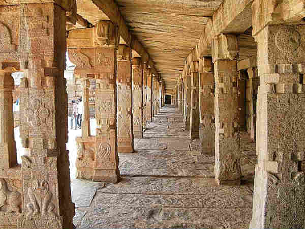 मंदिर में बने विशाल गलियारों का एक द्रश्य।